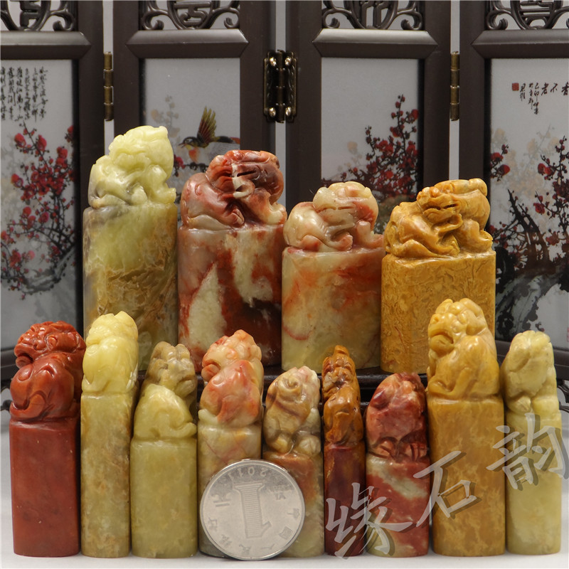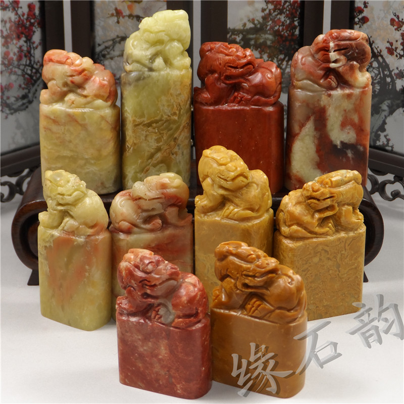 Shoushan Stone Practice Chapter Laoling Stone with the shape of ancient beast button head seal gold stone seal engraving idle seal stone seal stone seal stone seal