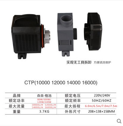 Sensen CTP-16000 Frequency Conversion Circulation Submersible Pump Fish Tank PumpIng Filtration Pump High Flow Head 140W
