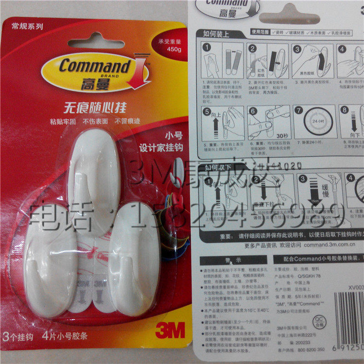 3M small Goldman hook does not hurt the wall nail-free viscose strong non-marking hook