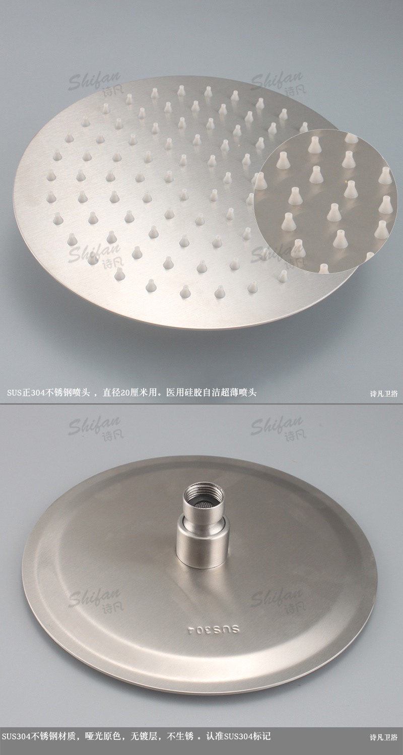 Positive 304 stainless steel shower head SUS304 stainless steel ultra-thin shower shower 8 inches