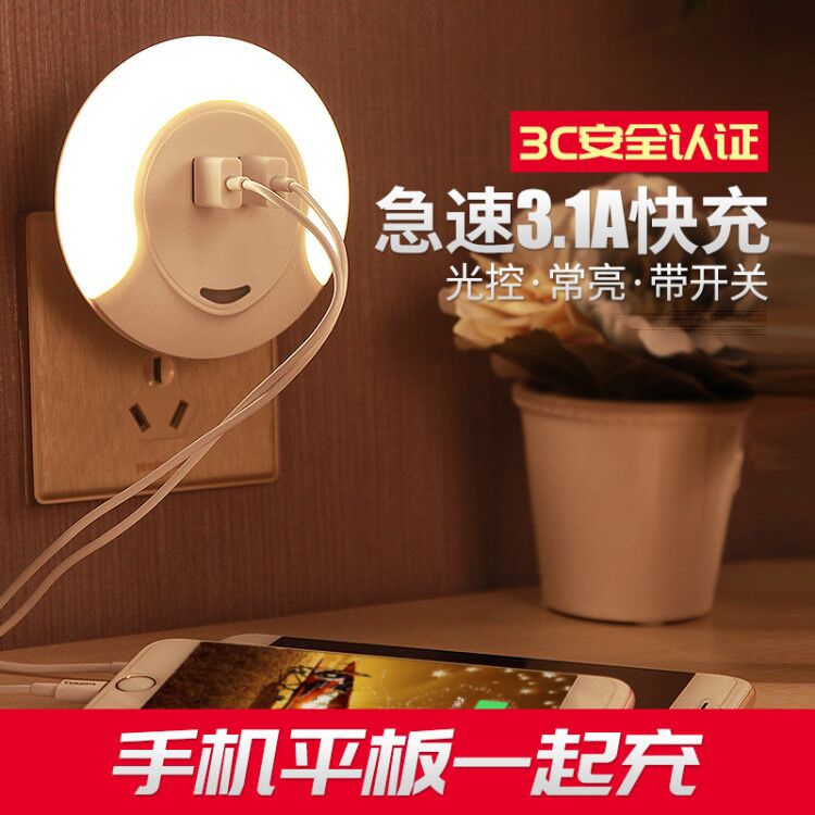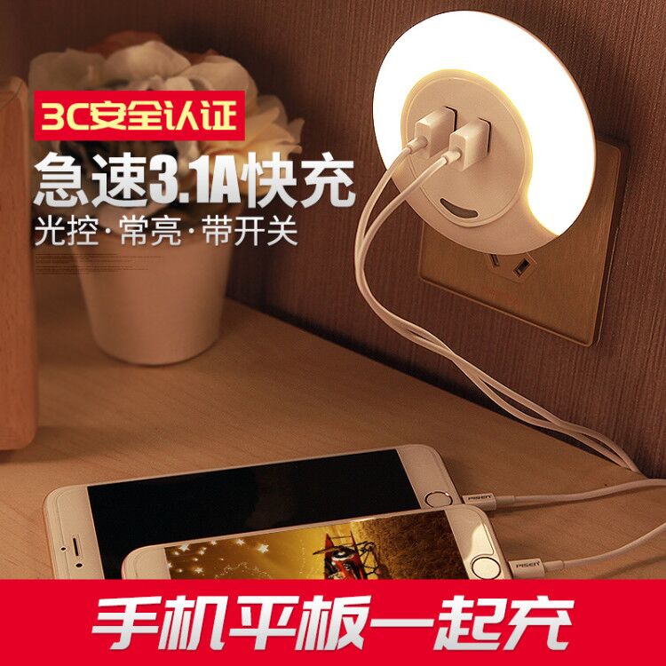Dual USB plug-in night light (light control) 3 1A five-hole socket night light (light control) Warm five-hole socket night light (remote control) Warm dual usb plug-in night light(light control