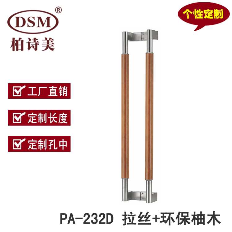 Baishimei KFC shop aluminum alloy frame door handle sterilization health environmental protection wooden handle PA-232