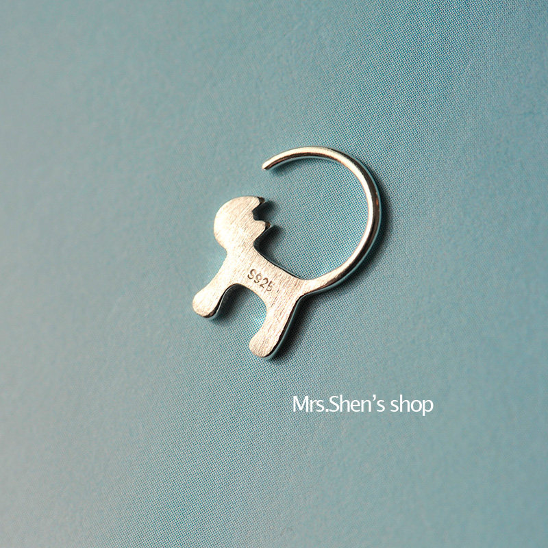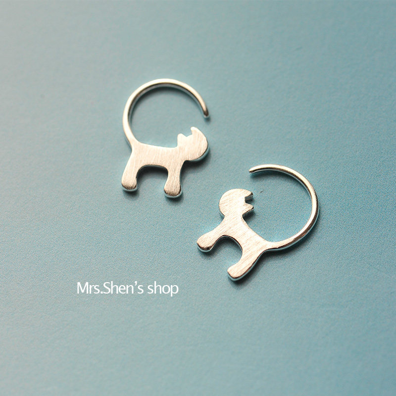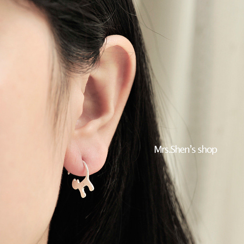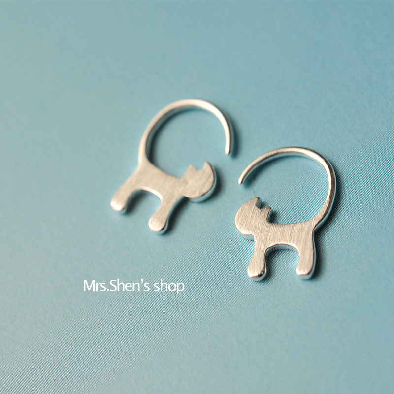 t Shen's wife S925 pure silver cute little cat ear hanging clear new wind wire drawing process earrings featured new product