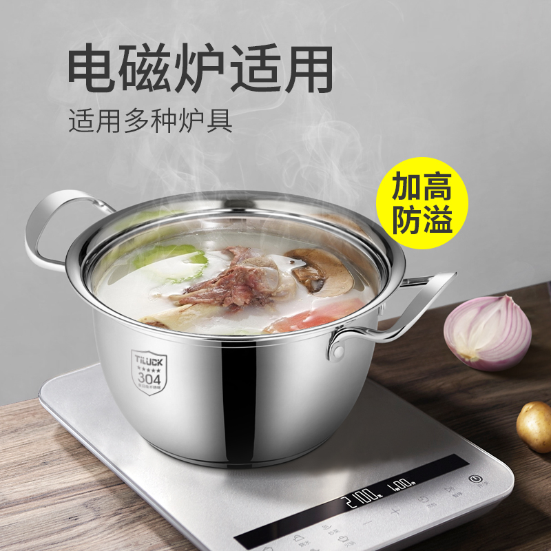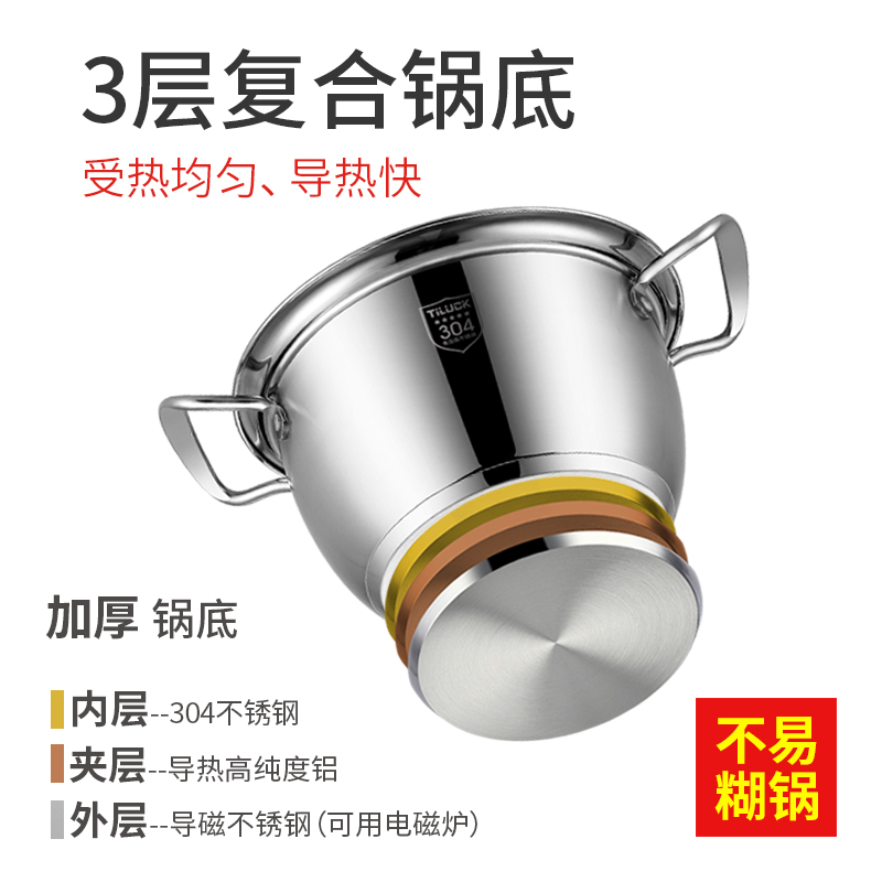Tilock 304 stainless steel milk pot double ear soup pot thickened hot milk pot Multi-bottom cooking milk pot Induction cooker universal