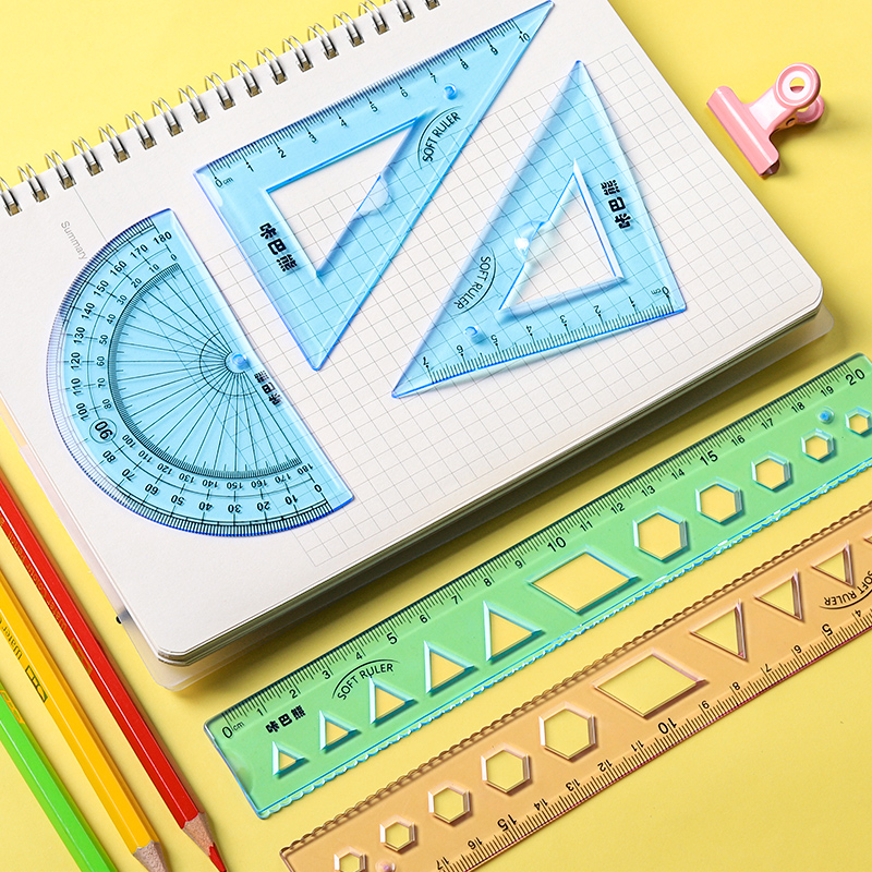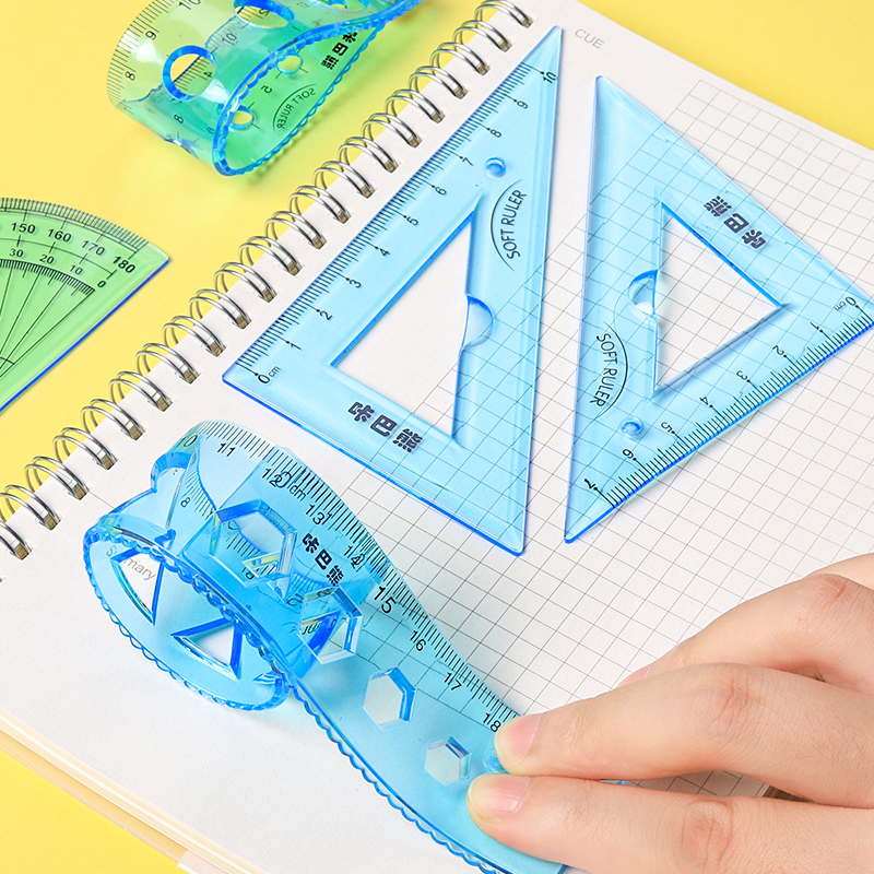 Soft - foot four - piece soft - foot 20 cm drawing sleeve triangle pupil triangle angle wave ruler