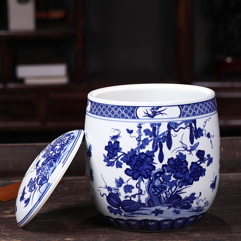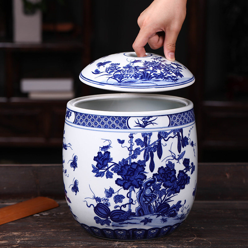 Jingdezhen pickle jar sealed pot ceramic with lid rice tank rice barrel tea pot snack container porcelain pot 10 catties