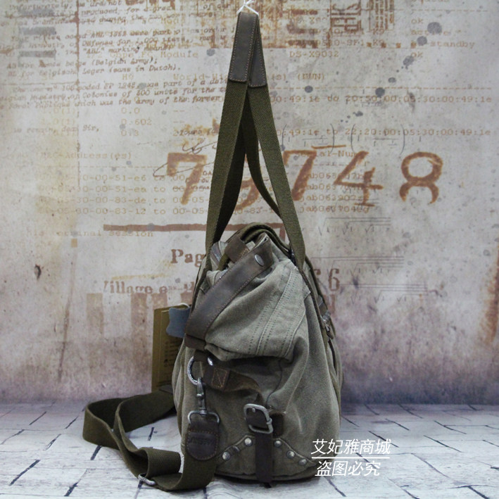 Men and women Canvas Single Shoulder Bag Inclined Cross Carry-on Bags European and American Leisure Retro Special Package Cow Leather YKK Laced