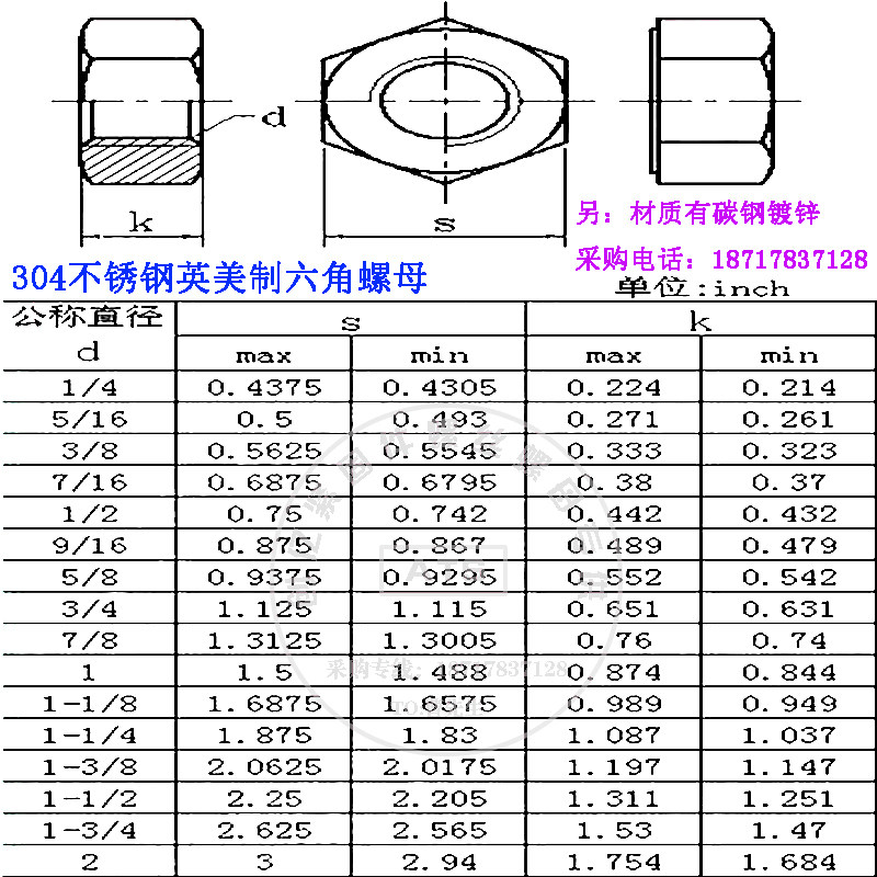 304 stainless steel fine tooth beauty hexagonal nut hexagonal nut British system 1 4-28 3 8-24 1 2-20