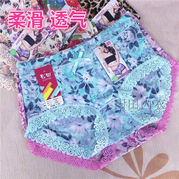 Caitian women's underwear silky ice silk ultra-thin breathable sexy lace mid-waist bamboo carbon underwear women's no trace