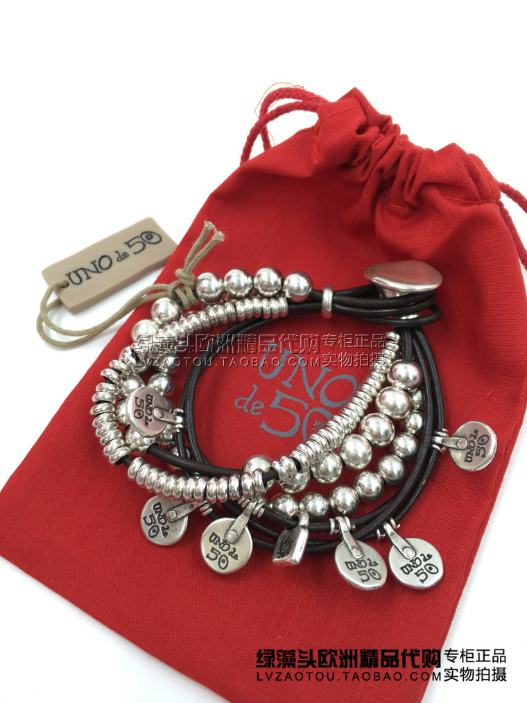 Spot Spanish handmade fashion trend brand UNO DE 50 couple round bead leather rope personality multi-layer bracelet