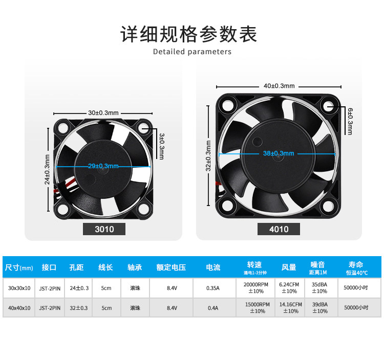 DC8 4V 11 4V 12V30mm40mm cm double ball violence model special small motor cooling fan