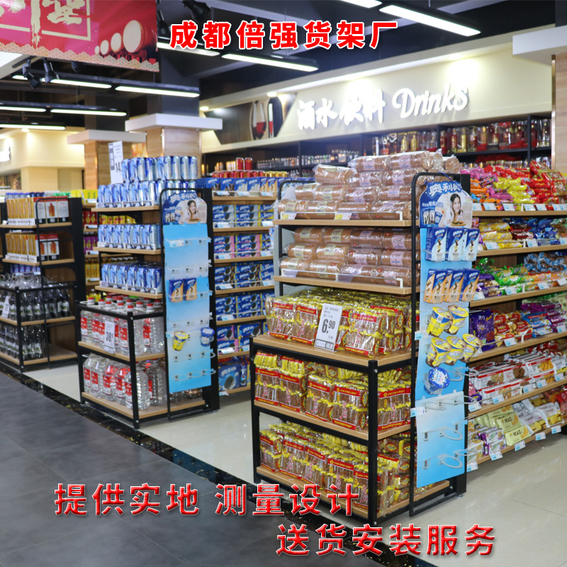 Sichuan Custom Convenience Store Supermarket Shelf shelf Show Shang Supershelf single-sided Double sided Chengdu boutique steel wood shelving