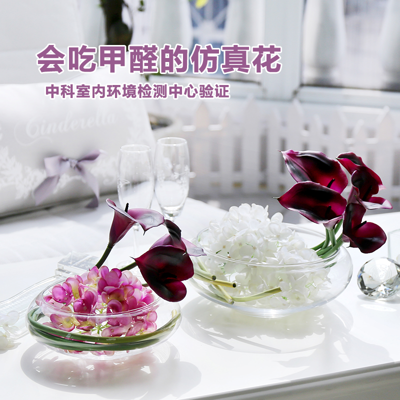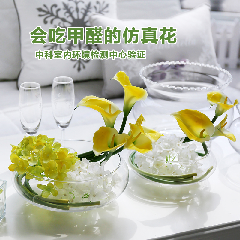 Hejia PU Calla Lily simulation flower glass flowerpot set feel fake flower sea Taro eternal flower photocatalyst flower gift
