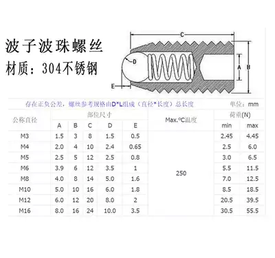 M3-M16 304 stainless steel ball positioning bead wave wave ball screw steel ball fixing spring ball head plunger