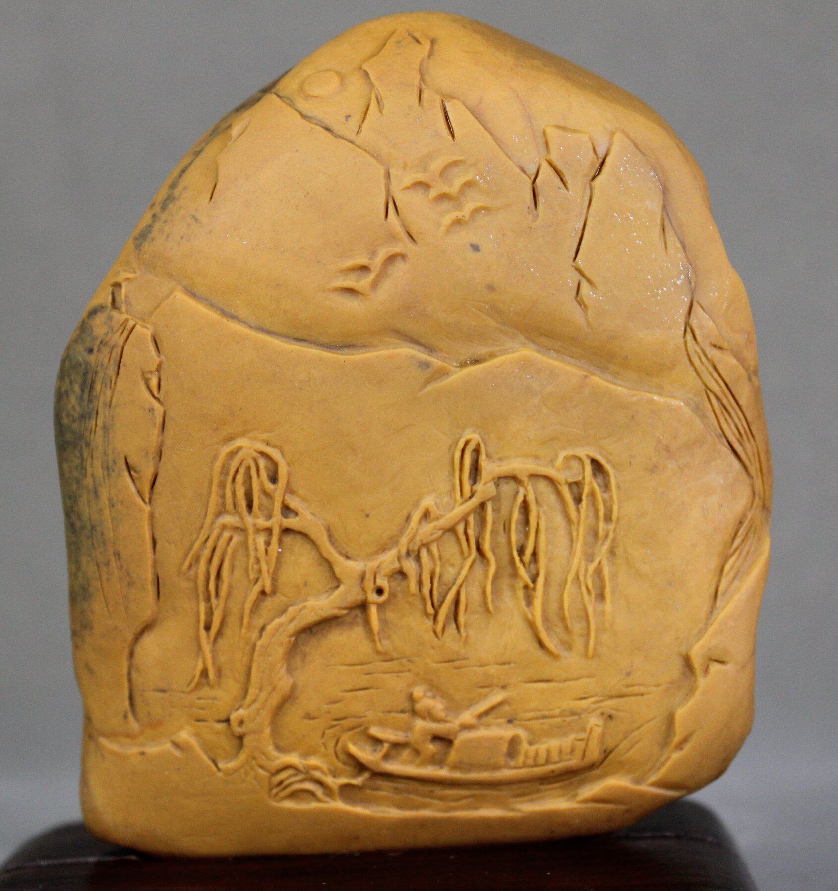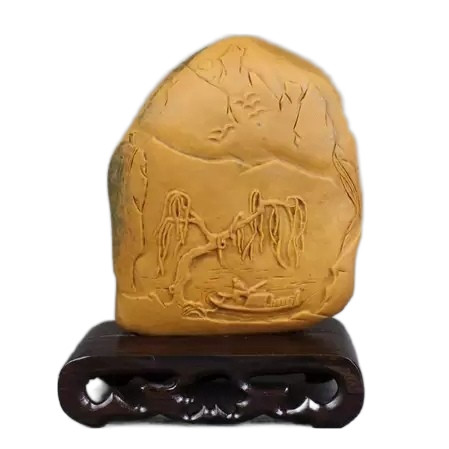 Landscape Small Ornament Fishing Boat Singing Late Yellow Dragon Jade New Natural Carved Seed Material Fine Wax Pavilion Pavilion Other Identification Certificates - Taobao