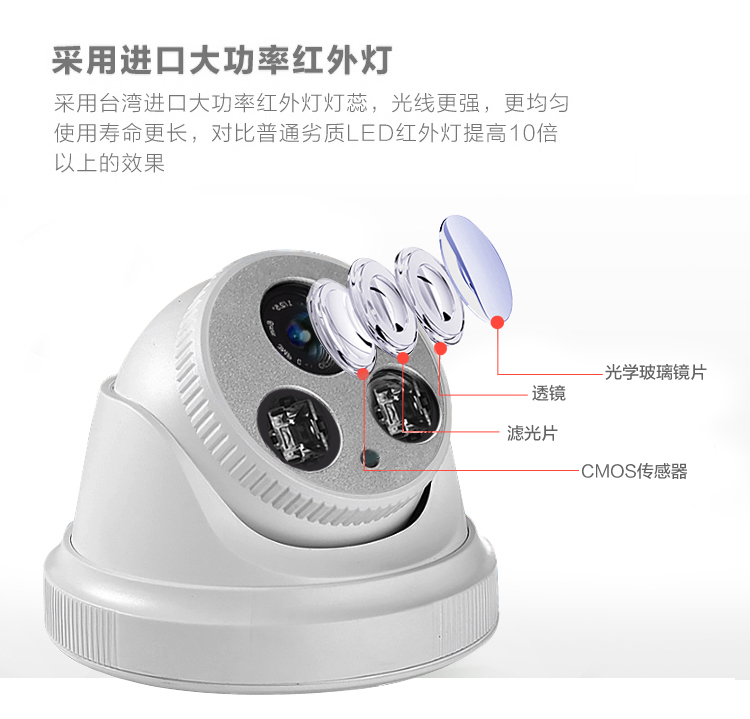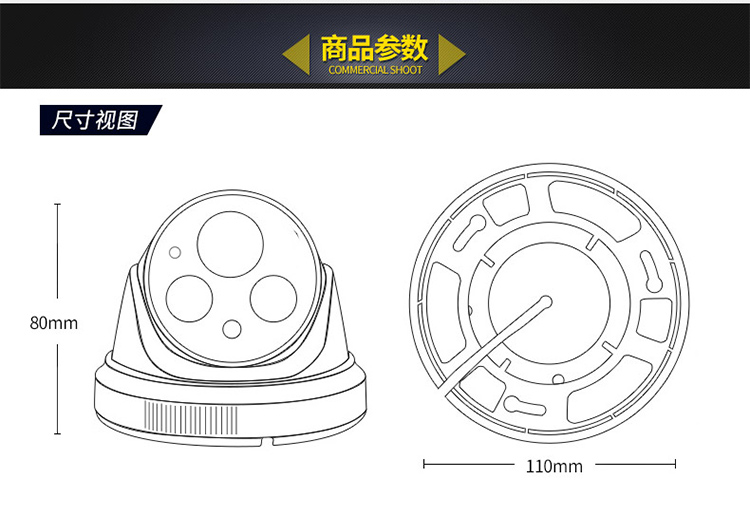 Simulated HD surveillance probe Night Vision Infrared Surveillance Camera Hemispheric Camera strengthens night vision spherical