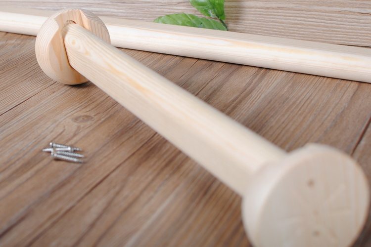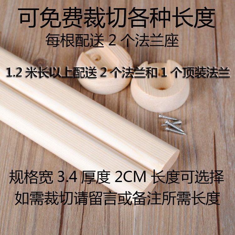 Solid wood pine wardrobe hanging clothing rod clothing support cabinet inside pine wood hanging clothing rod solid wood hanging pipe solid wood Zhongtong flange