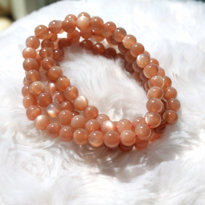 Natural Sun Stone Orange Moon Light Stone Buddha Pearl Bracelet Around Three Circles Unique Cat Eye Effect-Taobao