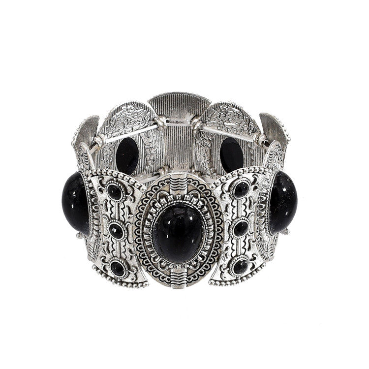 Nepal retro green pine stone bracelet handmade female wide jewellery Tibetan Tibetan hand ring ancient with vintage silver