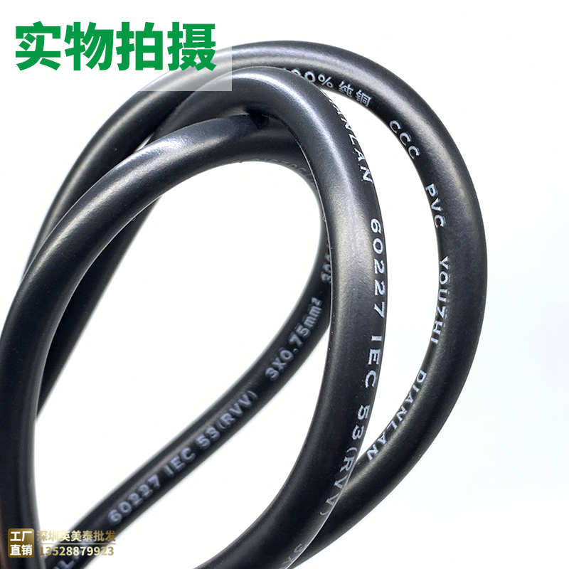 Factory direct sales of pure copper 3*0 75 square 1 5 meters three plug three holes character 3 core plug line national standard power cord