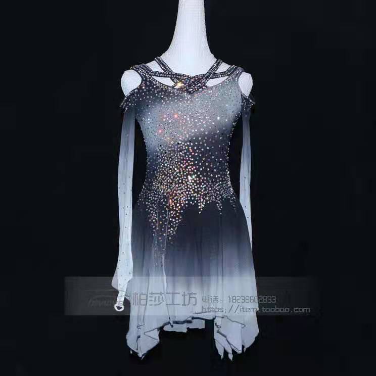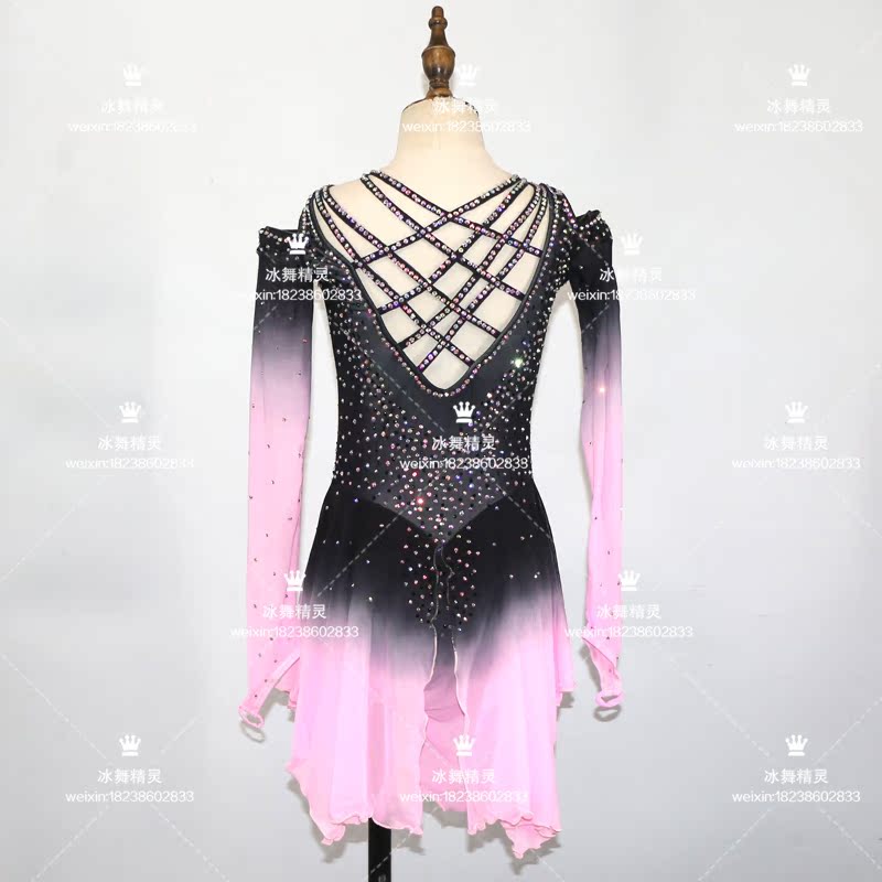 Ice dance elf children's figure skating costume adult performance suit skating dress D16
