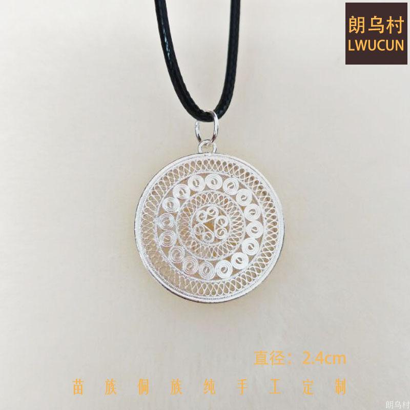 Guizhou Sun Drum Langwu Village] Necklace Miao sterling silver handmade two-piece set of copper drum pendant 2 4