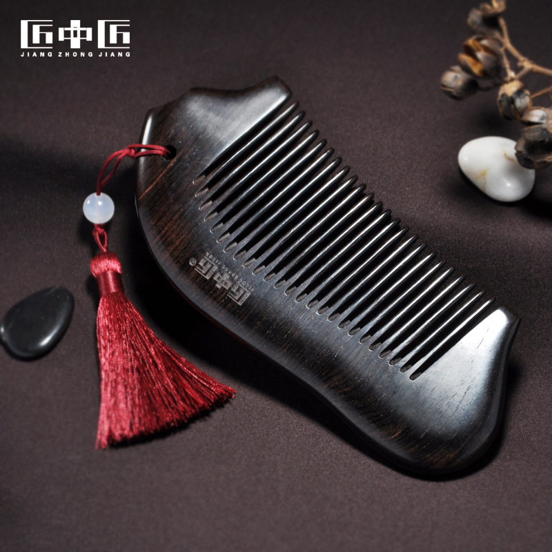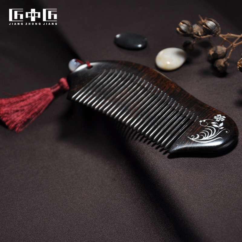 Craftsman in the craftsman new black sandalwood comb Natural solid wood whole wood small portable comb lettering for women