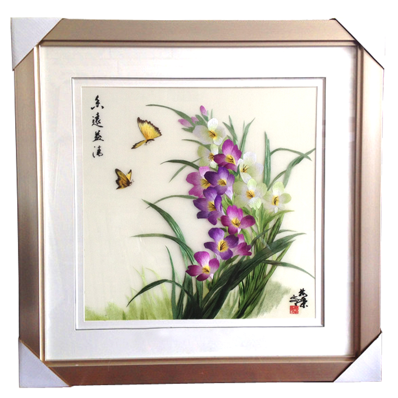 A variety of optional Suzhou characteristic hand-embroidered orchid finished artwork decorative painting Chinese style Su embroidery single-sided hanging painting