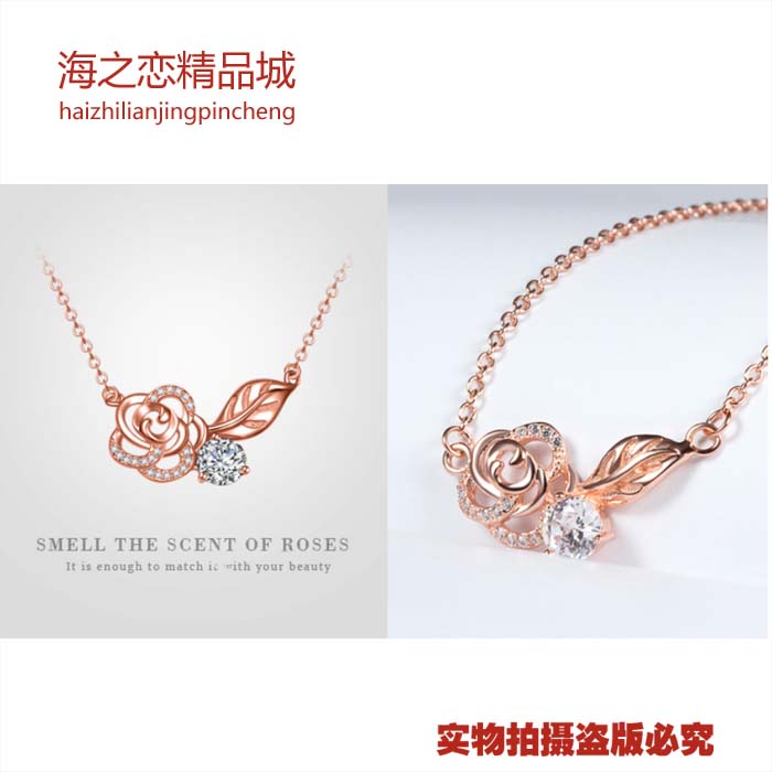 925 Silver gilded rose pendant necklace for women Tanabata gift Mid-Autumn Festival gift All the way to have you necklace for women