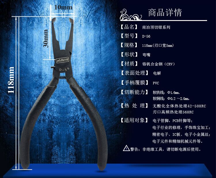 NANYE South Metallurgical D-56 Top Cut Pliers Small Pitched Cut Water Cut Pliers Special Water Cut Pliers Special Water Cut Diagonal Mouth Pliers Flat Pliers