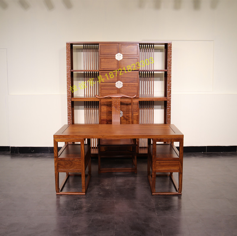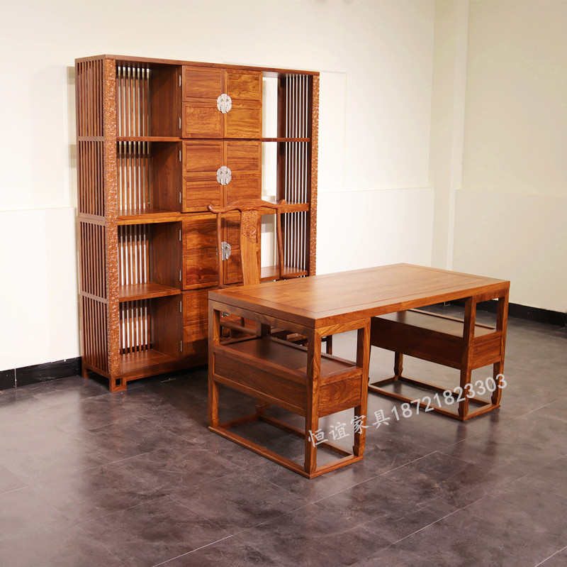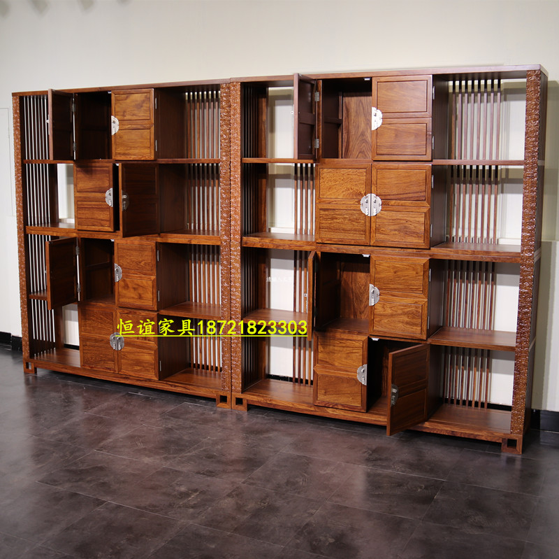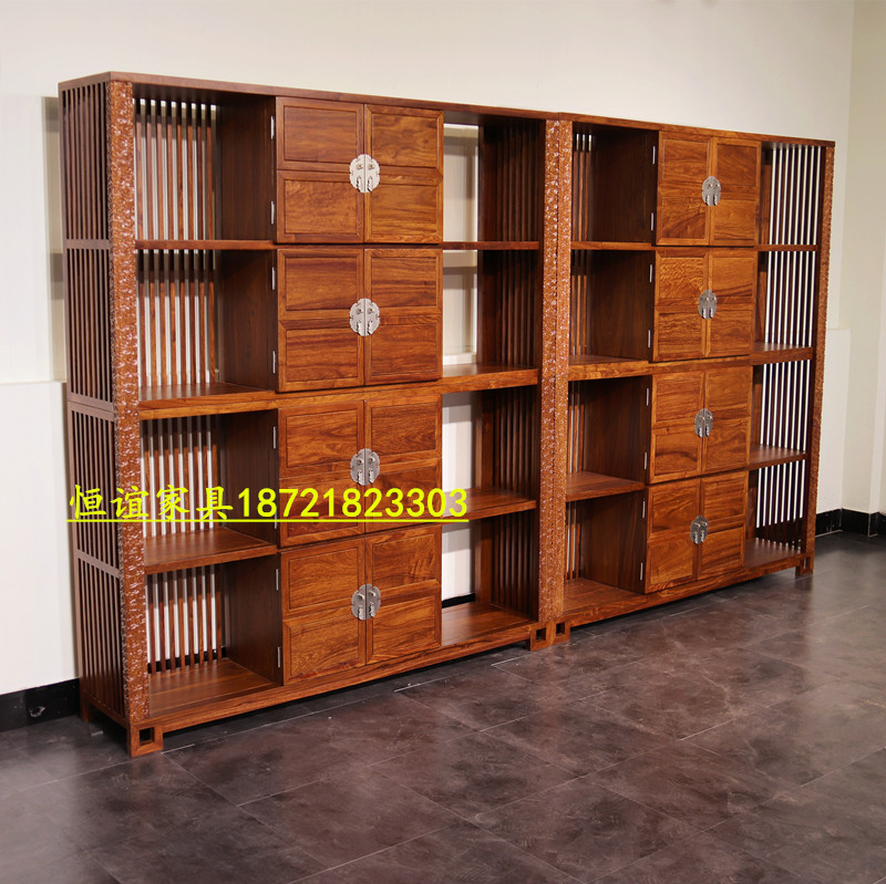 Modern new Chinese all solid wood bookcase hedgehog red sandalwood Chinese furniture Xiangyun bookshelf rack rosewood bookcase