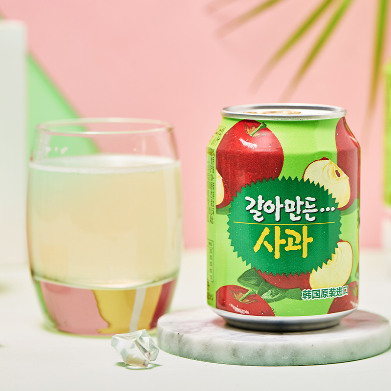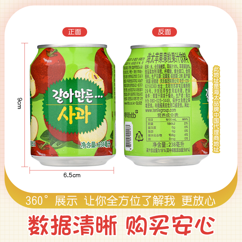 Original Korea imported Haitai grain pulp apple juice beverage 238ml * 12 tin fruit flavor postage