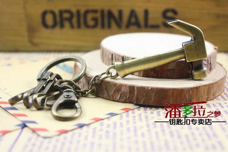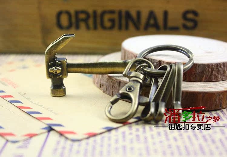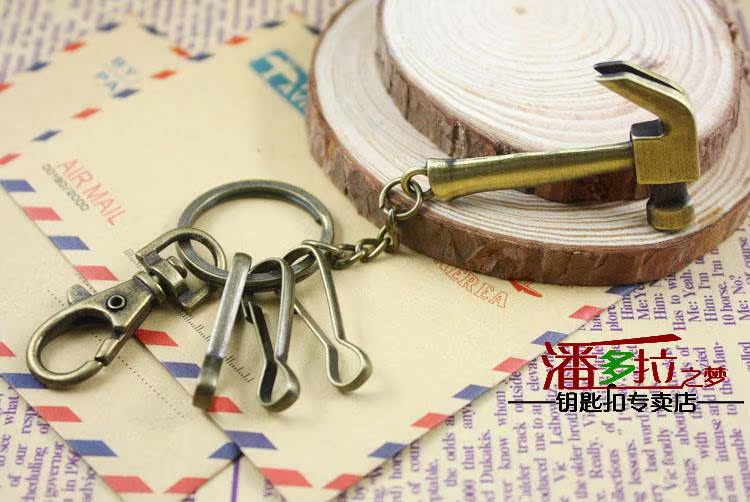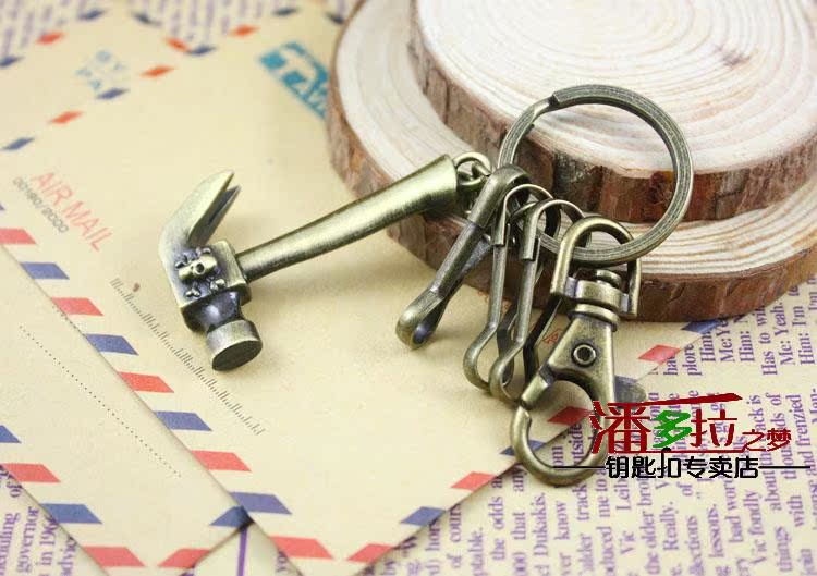 Classic Skull skull head small hammer Hammer Key Strings Creative Men Retro Bronze Key Clasp Imitation Tool Series Spoon Clasp