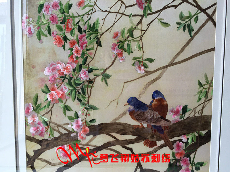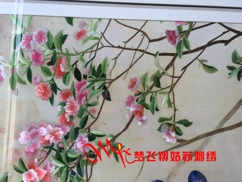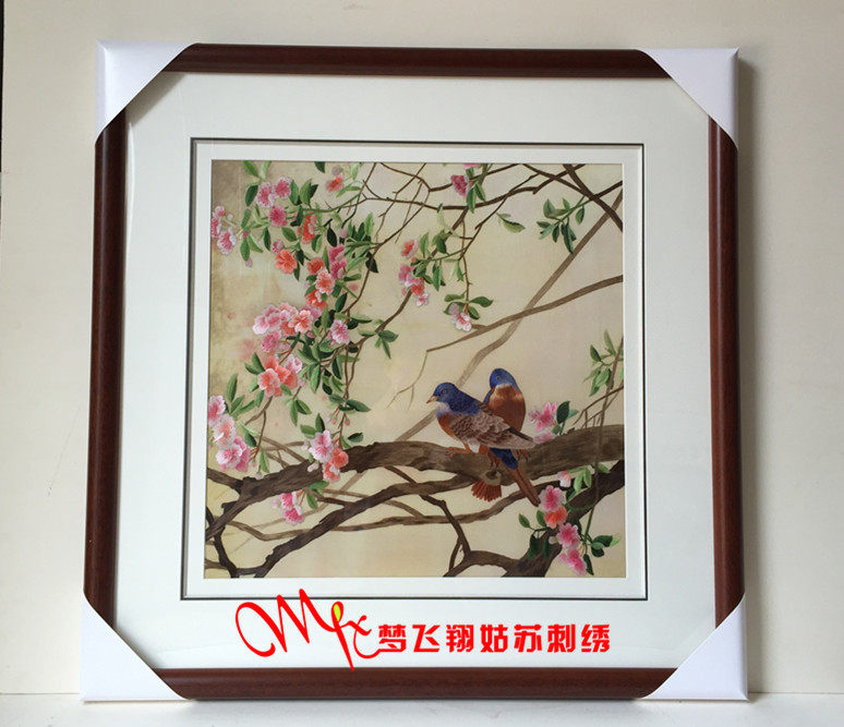 Meng Feixiang handmade brand Suzhou embroidery embroidery finished living room paintings boutique Suzhou embroidery peach blossoms and birds bedroom porch painting