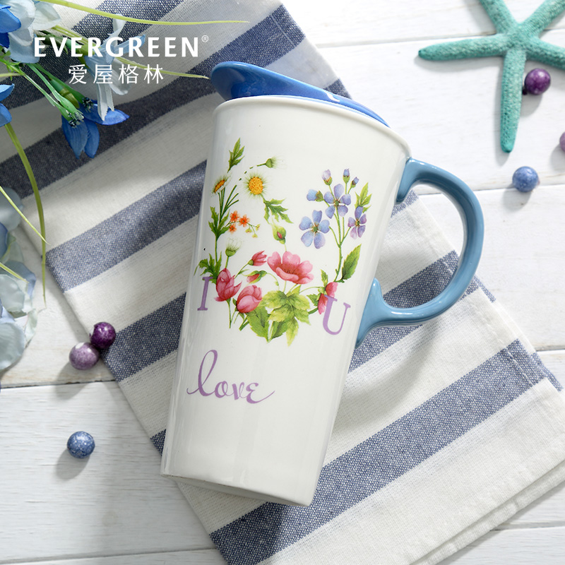 Love House Green mug with lid large capacity ceramic cup cute cat coffee cup office water Cup home