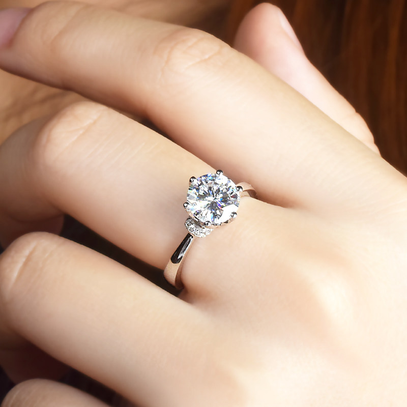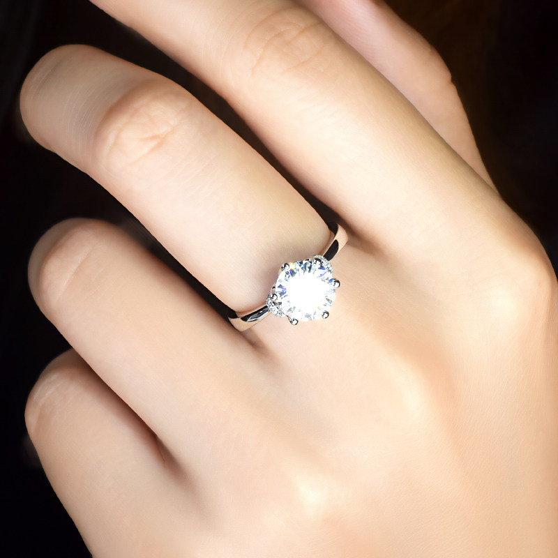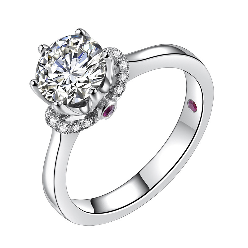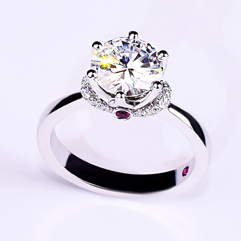The United States imported CC moissanite ring female 18K white gold 1 carat diamond ring petal six-claw crown ruby wedding ring