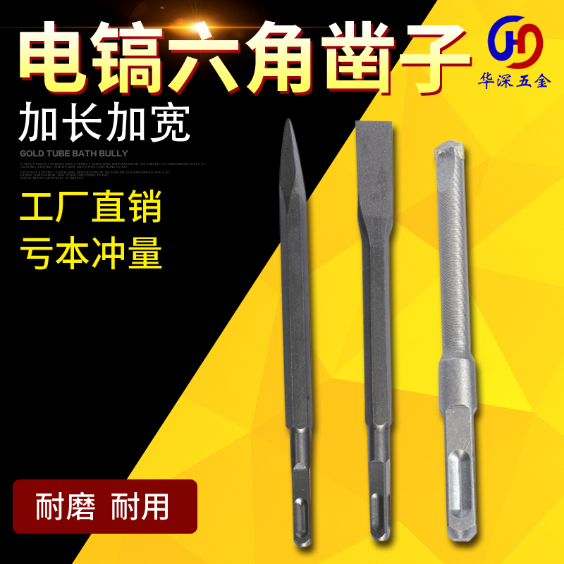 Lengthened widening pick head with sharp shovel wall length hexagonal tip flat chiseling drill chisel wall drilling electric hammer drill concrete impact drill