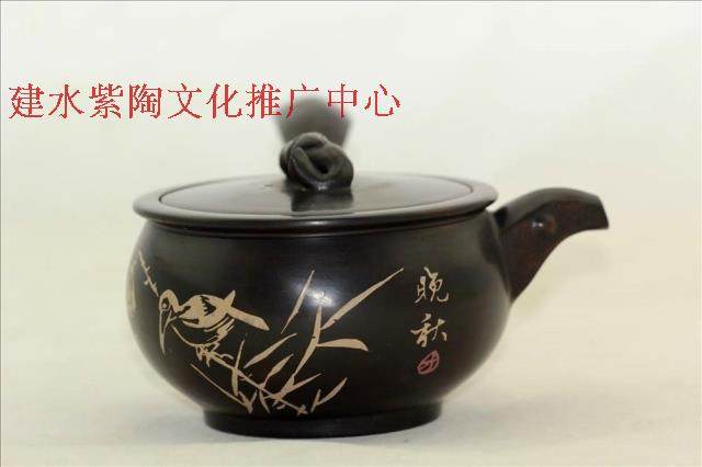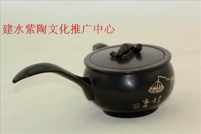 Chinese famous pottery Jianshui Zitai Yunnan ceramic craft Master Jiang Jiacai Zitai works of horizontal handle pot-late autumn