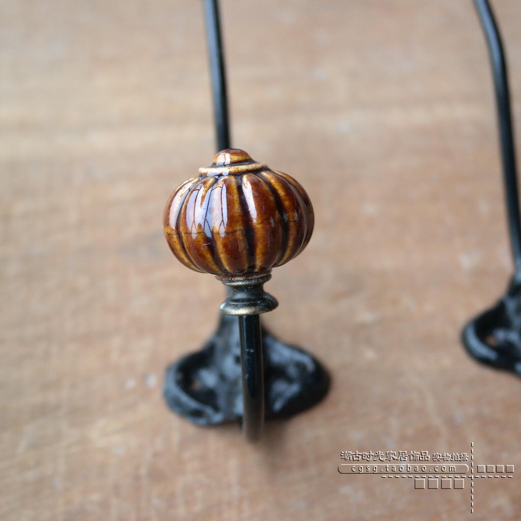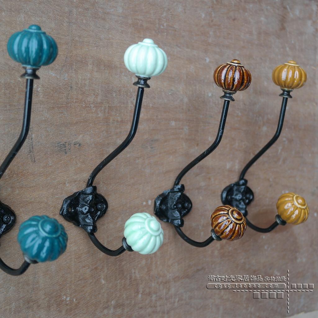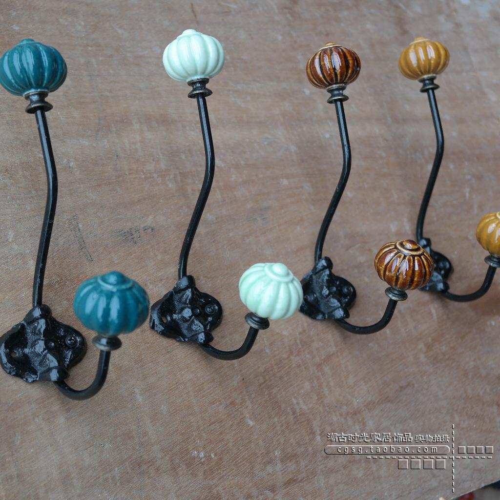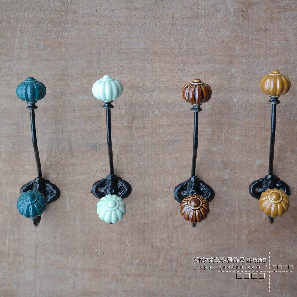 New ceramic metal wrought pumpkin adhesive hook European retro old home wall decoration clothing store creative coat hook
