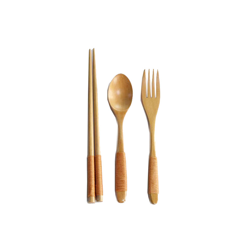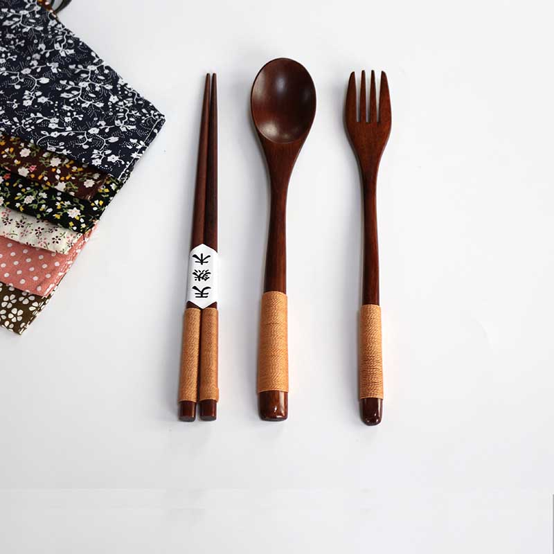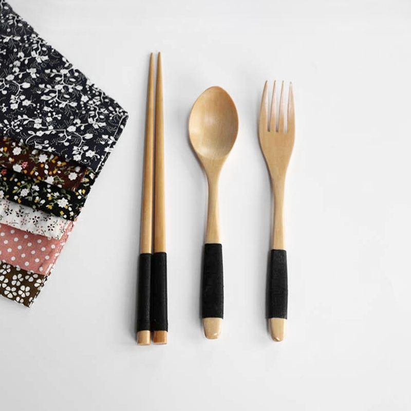Creative Students Cutlery Sets Solid Wood Adult Chopsticks Portable Cutlery Wooden Spoon Fork Chopsticks THREE SETS DELIVERED CLOTH BAG CHOPSTICKS