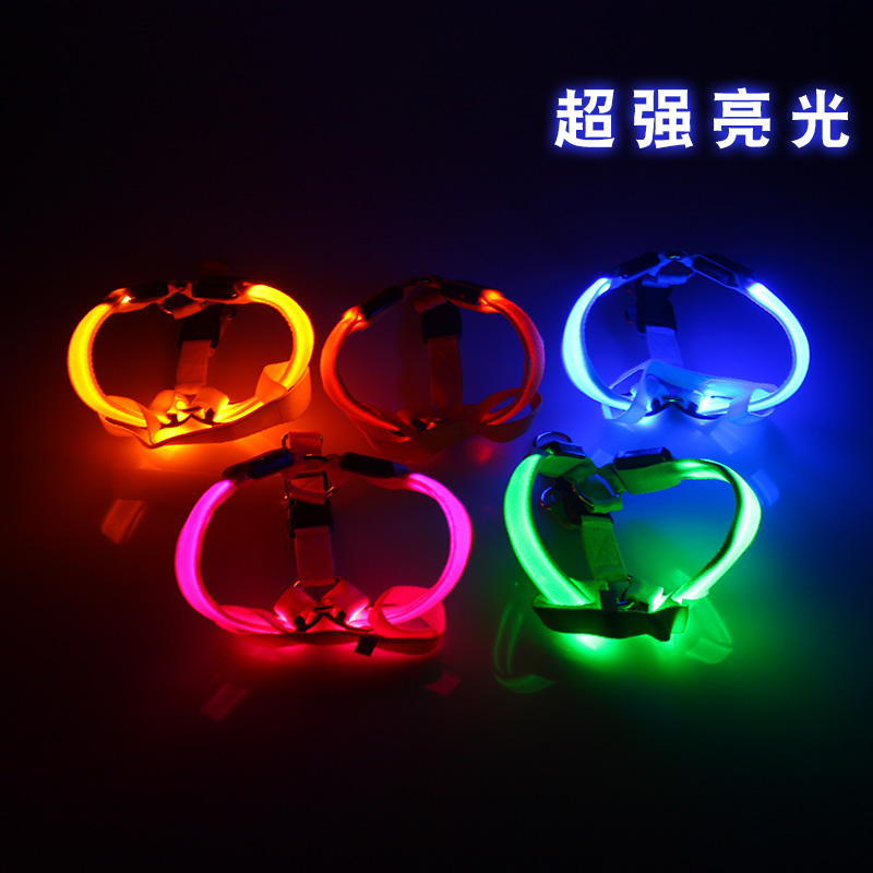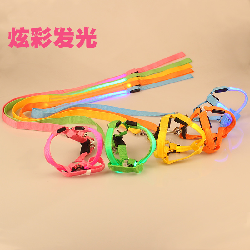 Pet dog traction rope coil household teddy gold hair anti-loss dog chain night LED luminous chest strap suit