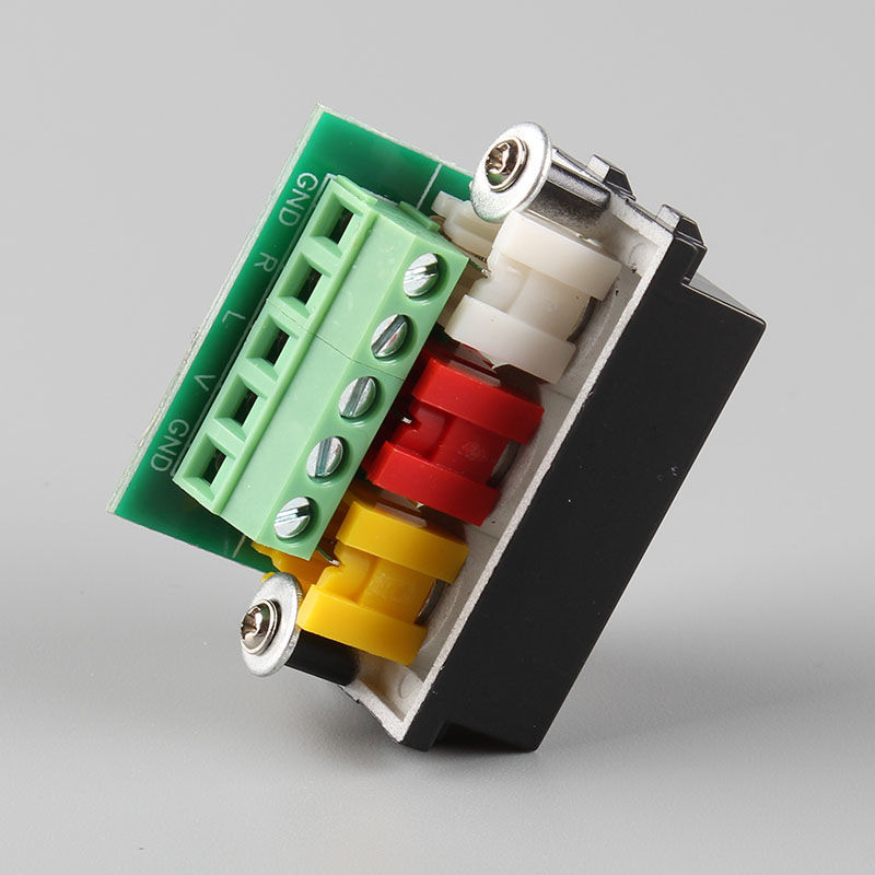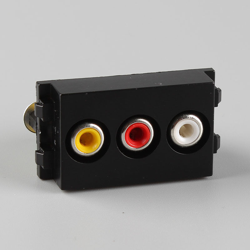 Black RCA lotus hole socket module free of welding TV set upper box connection 3RCA audio-video panel module