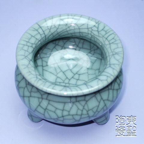 Promotional medium-sized three-legged incense burner antique cracked glaze ceramic insert household incense burner Longquan kiln offering supplies