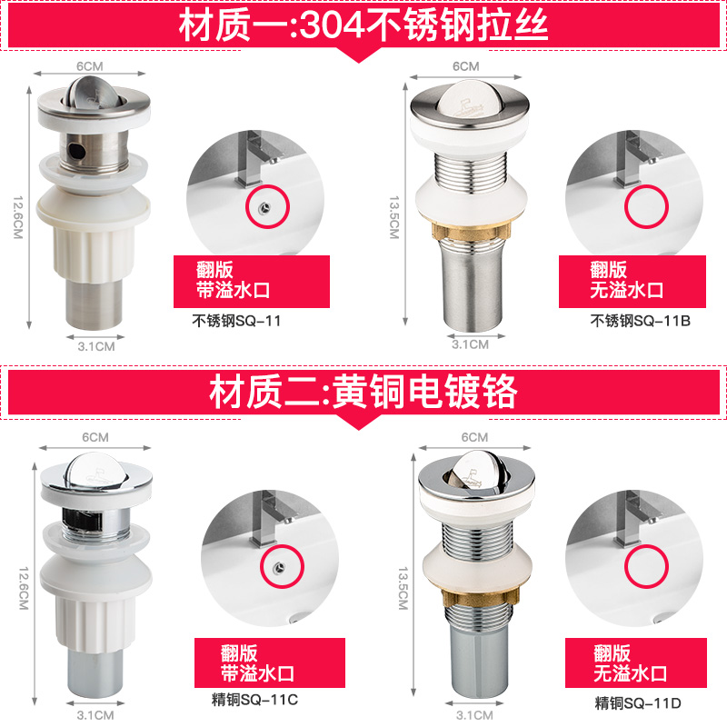 _ (((_(side row package)Stainless steel bouncing drain (with overflow port) drain pipe
