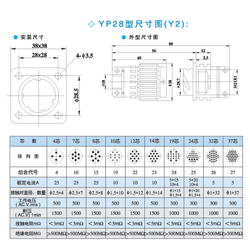 Aviation plug Y2M Y28M-4 core 8 core 10 core 12 core 14 core 19 core 24 core 32 core 37 core connector