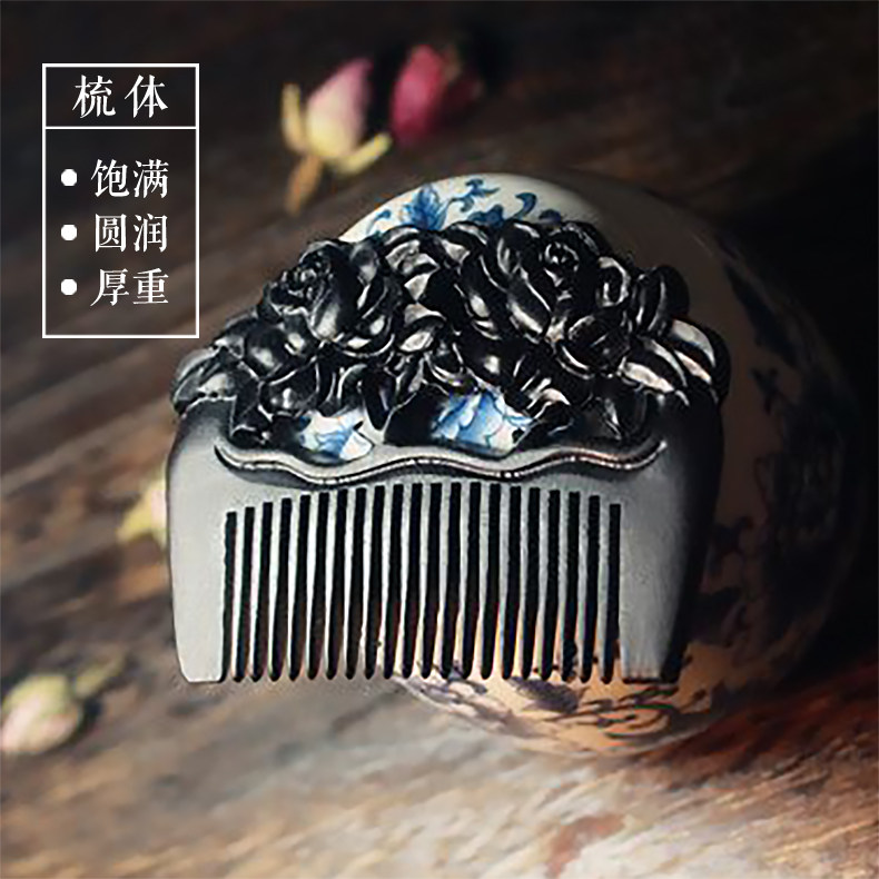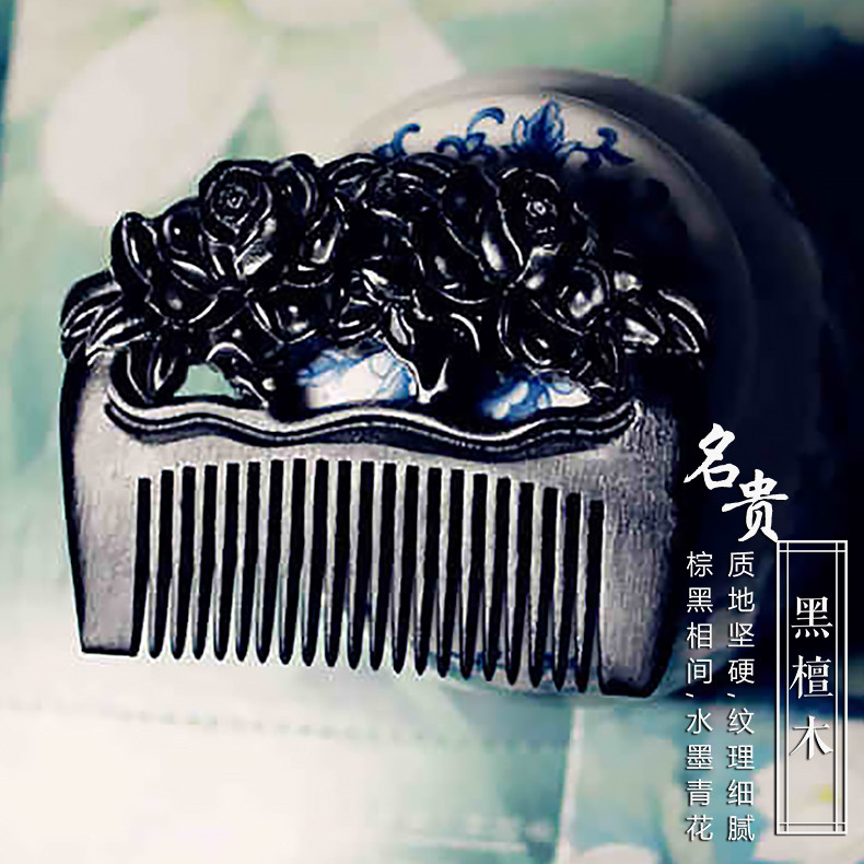 Customized engraving roses natural black sandalwood comb for girlfriend girlfriend wife wooden comb sandalwood