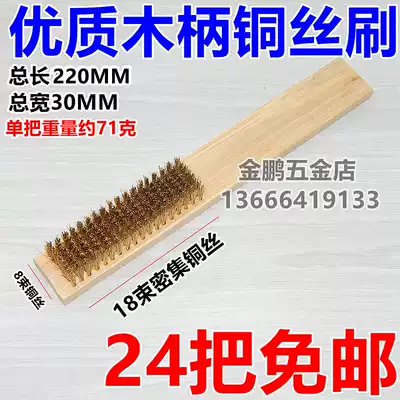 Wooden handle new nylon polished brush wire brush wire brush super large rust removal pure copper 8 rows intensive hard copper wire brush