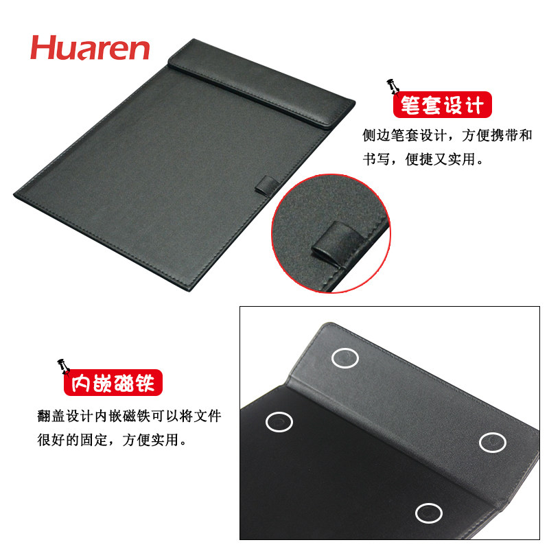 Leather high-grade magnetic data folder pad clip signature custom wholesale writing splint office a4