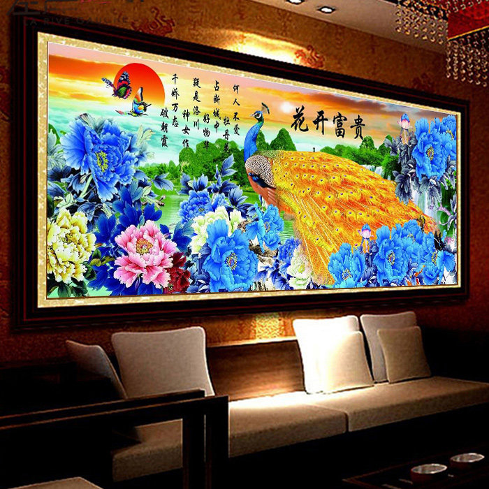 Flowers open rich 110x41 cm (applique peacock peony flowers) 5D magic square round drilling and sending tool flowers open rich 140x50 cm (applique peacock peony flowers) 5D magic square round drilling and sending tool flowers open