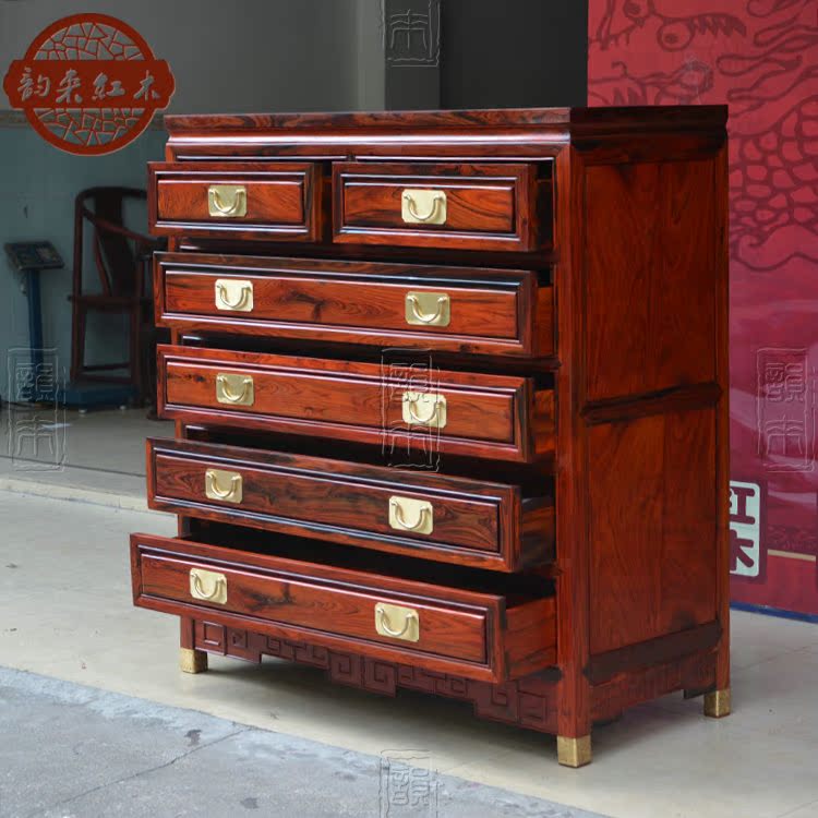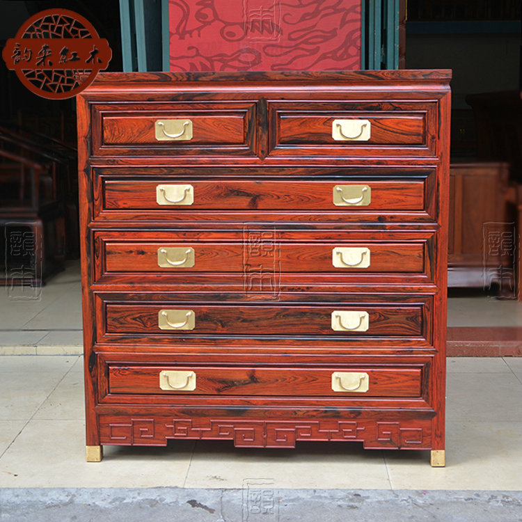(Rhyme) Laos big red rosewood plain surface single-board six-drawer cabinet locker storage cabinet mahogany solid wood furniture